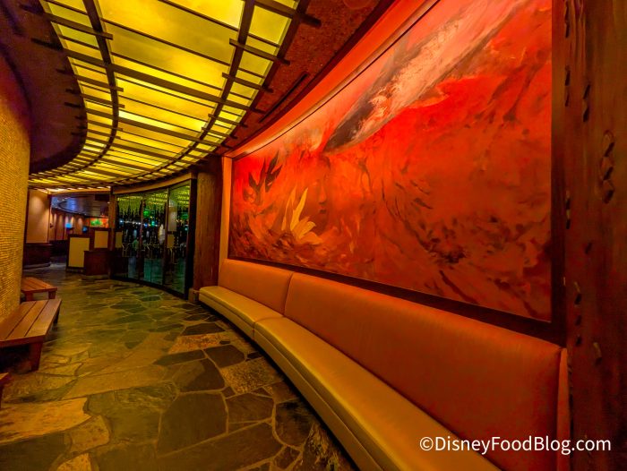 The restaurant’s lighting is so beautiful at nighttime, and you can see the lighting fixtures and artwork that represent Makahiki.
