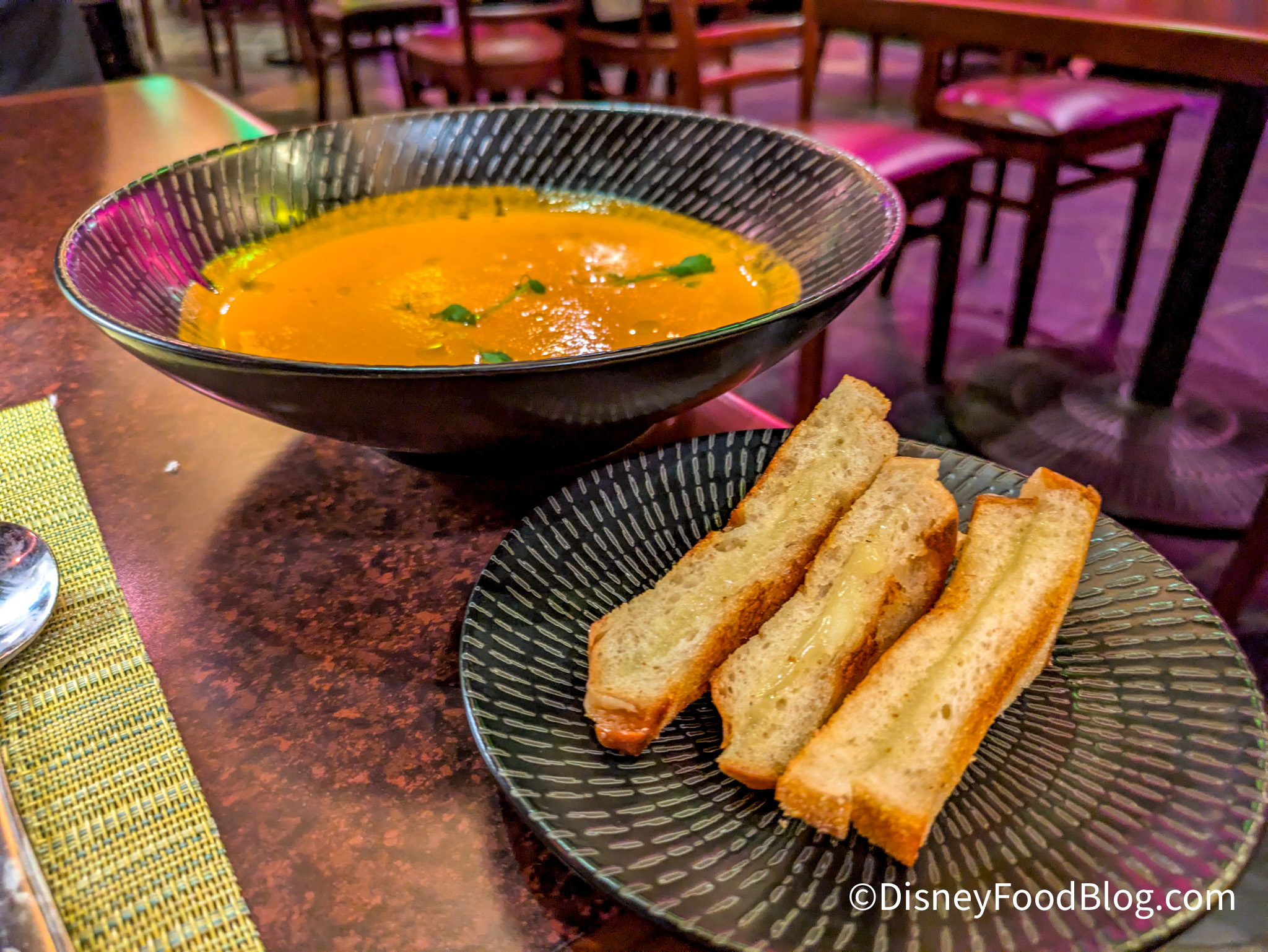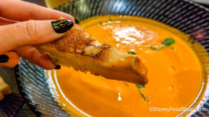 This was a huge portion once again, and it was more of a bowl rather than a cup! It was so creamy and savory, and we tasted a hint of basil. It also came with sourdough fontina melts, which is just a fancy way to say grilled cheese. This was truly like an entree-sized portion.