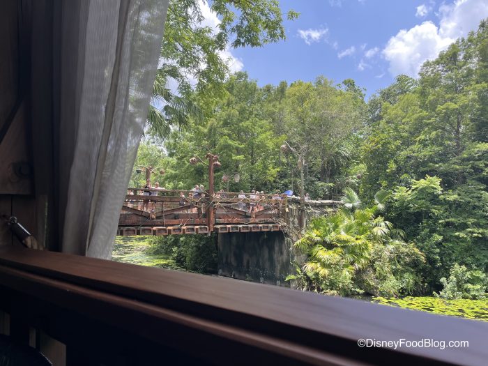 The patio will give you a great view of the Discovery River. Who knows, you may be lucky enough to see some characters passing by on the water! The area is just surrounded by nature, really immersing you into the Animal Kingdom — it’s beautiful!