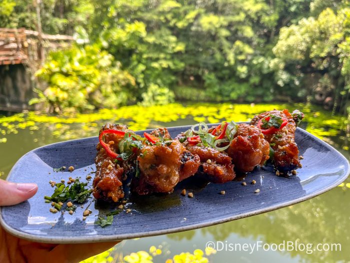 The wings were covered in peanuts, so if you don’t like peanuts, we probably would say this wouldn’t work for you. The peanut flavor was strong and noticeable. There were peppers that also came on the wings, but not very many.