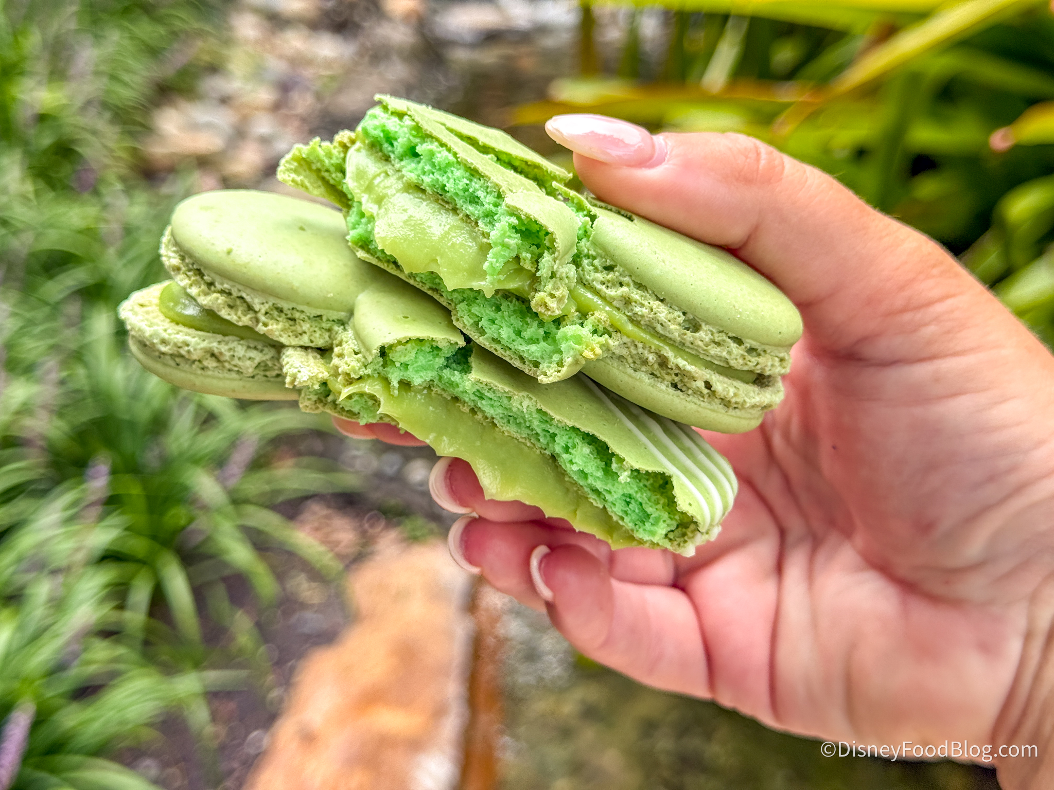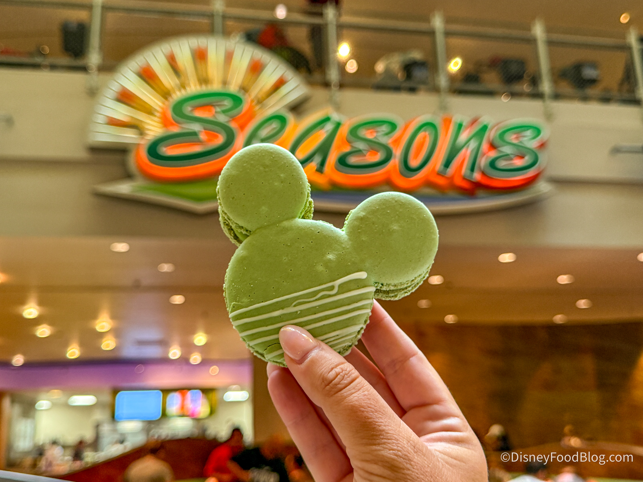 Right now, you can try the new Mickey-shaped Pistachio Macaron for $5.79 at Sunshine Seasons. It’s pistachio-flavored through and through, and it might be the most fresh-tasting macaron we’ve ever had! *cover your ears, France Pavilion!* The outside of the macaron was light, sweet, and so fragile, just how it’s supposed to be. The slightest wrong touch will make it crack, so be careful if you’re trying to snap the perfect photo.