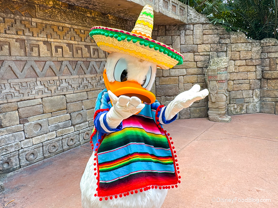 That is especially true when the character is one of the Fab Five, a.k.a. Mickey, Minnie, Donald, Goofy, or Pluto. Well, for a while, one of those characters has been missing from his usual meet-and-greet spot in EPCOT. Now, though, we are happy to report that Disney’s #1 duck has returned to the Mexico Pavilion with his poncho and sombrero and is meeting people there again!