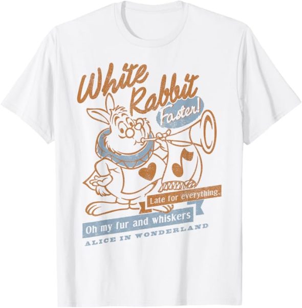 If you’re a big fan of Alice in Wonderland, you’ll love grabbing the Alice In Wonderland White Rabbit Outlined Text Poster T-Shirt to bring back that “big t-shirt with shorts” look. That one’s been back for a while, which means we think it’ll stick around for quite some time!
