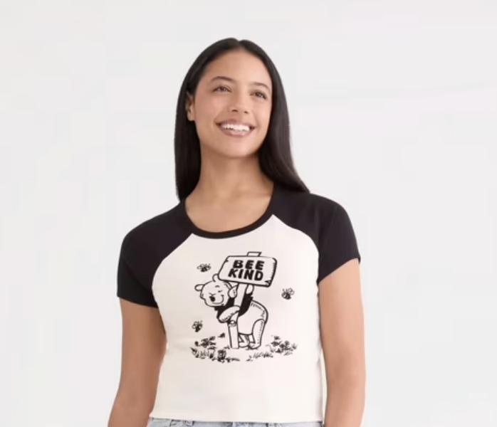 If you love Winnie The Pooh as much as we do, and that love has never gone away, then the Winnie the Pooh Women’s Graphic Baby Tee is calling your name! It screams ’90s to us, especially paired with some graphic socks, chunky sneakers, and a belt bag.