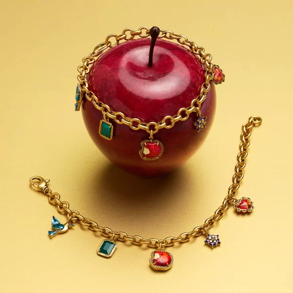 In addition to that classic shape, one of them has a light green stone, surrounded by small silver jewels with a tiara on top. Is anyone else seeing Princess Tiana? The other necklace shoes off an inscription on the back reading “visionary” on a gold necklace. This new collection comes after the Snow White collaboration for the live-action film!