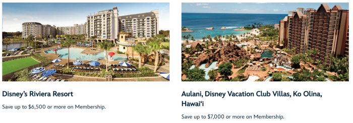 Other discounted Disney properties include Disney’s Riviera Resort and Aulani….