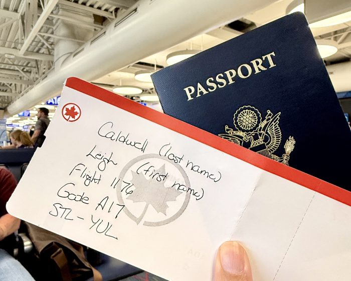 Luckily, I’m #CarryOnCrewForever, so I didn’t need to check a bag. But that didn’t stop my stomach from flipping — the chaos was giving me flashbacks to a different trip through STL just weeks earlier, when the airport computers were down and I ended up with a hand-written boarding pass.