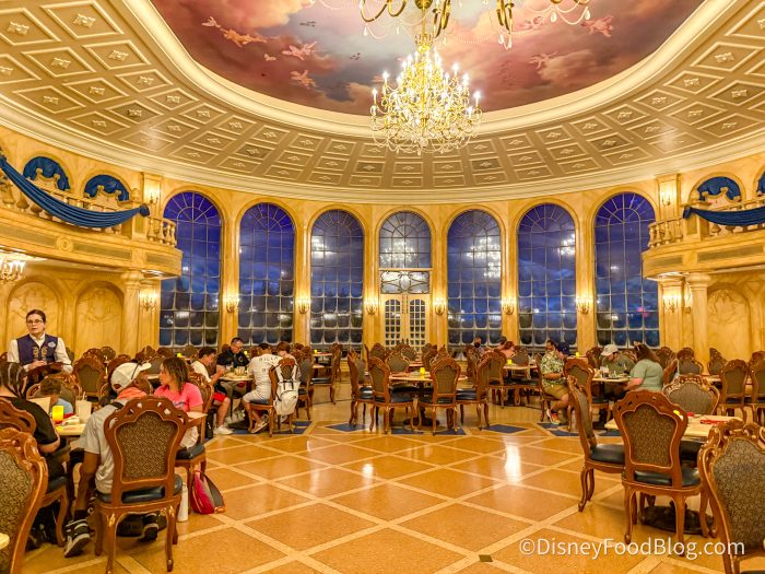 Each dining area features gorgeous designs and hidden details from the Beauty and the Beast movie. From vaulted ceilings adorned with chandeliers to figures of Belle and Beast, there is so much to look at while dining here.