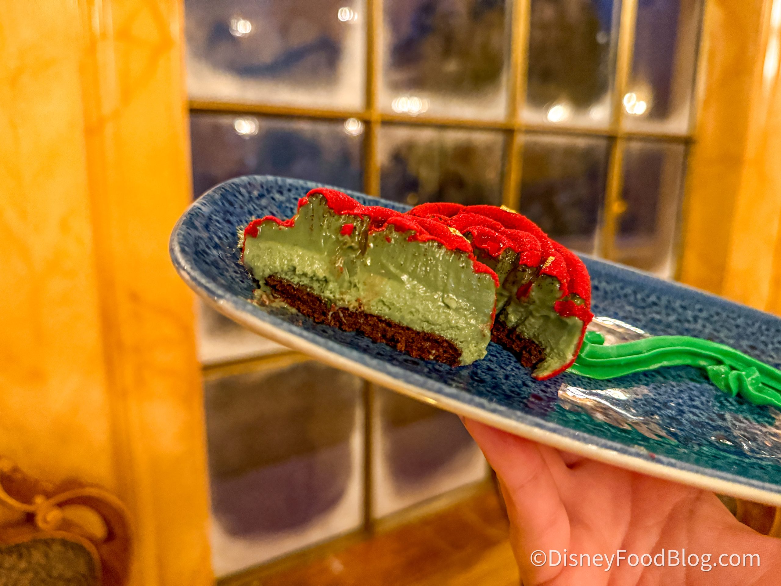 The bottom has a thin layer of chocolate cake that was very moist. The outside of the cake is coated with a milk chocolate that easily crumbles away when you break into it. Between the cake and the top, there are two layers of “Grey Stuff.” The first one was okay, but it wasn’t the consistency that we are used to. The second layer of “Grey Stuff” is a very gelatinous version that we weren’t fans of. Overall, we were disappointed in this dessert.