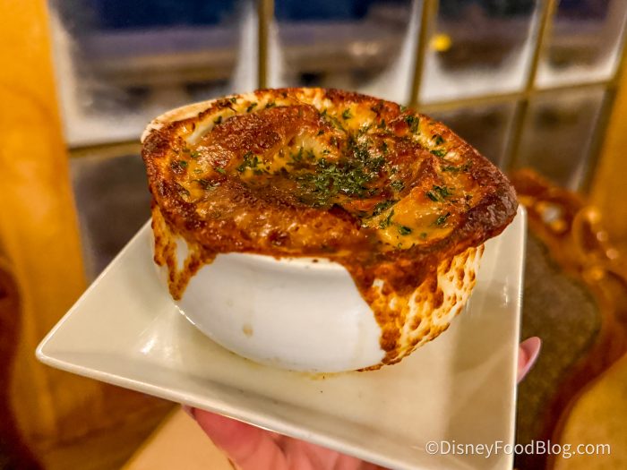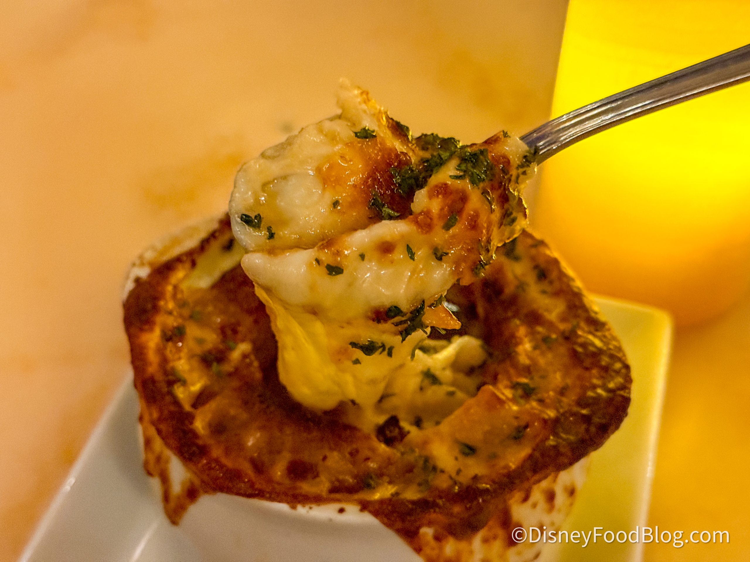 While the description might have changed, we are happy to report that this is still the classic French Onion Soup. It is cheesy with just the right amount of saltiness and creaminess to it. The broth is savory and flavorful, and the cheese is ooey and gooey. This soup can make your troubles melt away!