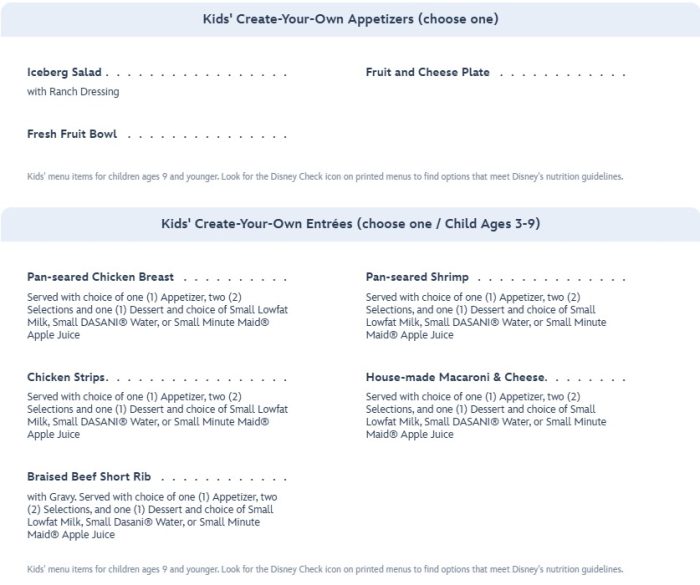Be Our Guest offers a prix fixe menu for both lunch and dinner. The meal costs $72 per adult and $43 per child. With the prix fixe meal, adults get one appetizer, one entree, and one dessert. Kids get to choose one appetizer, one entree, two sides, and one dessert. Starting with the adults, let’s take a look at the options for appetizers and entrees.