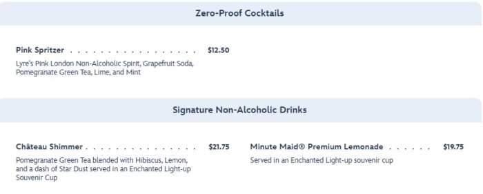 You can also choose to add-on a specialty beverage like a zero-proof cocktail or a signature non-alcoholic drink.