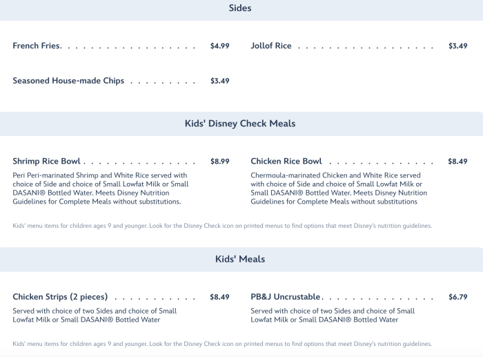I LOVE the Frozen Flamingo!!! Even if I’m not eating at Harambe Market, I’ll still stop by just for that drink. As a picky eater, I can see why people might skip this spot, but the kids chicken and rice bowl is a pretty simple yet delicious option.