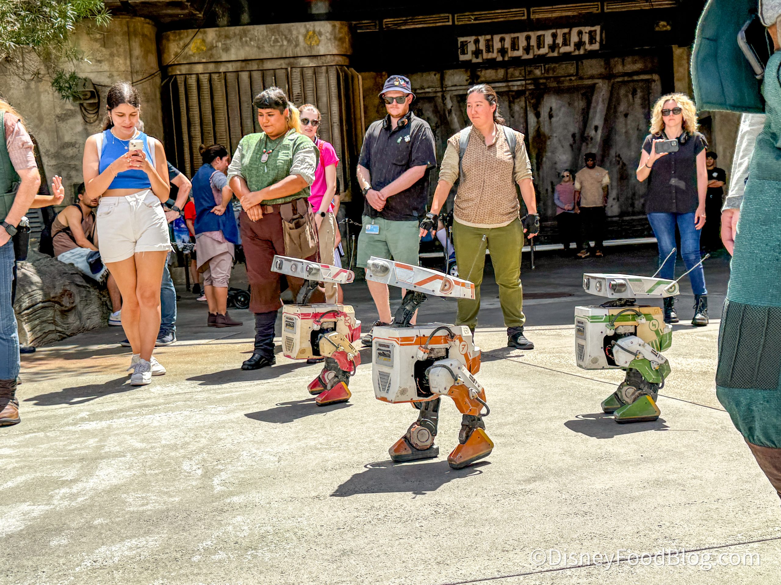 Right now, you can spot them at 11:30 AM, 12:30 PM, 3 PM, 4 PM, 5 PM, and 6 PM. However, those appearance times can always change and are also dependent on weather. Make sure you check the My Disney Experience app for the most up to date times you might be able to catch the BDX droids out and about! Plus, you will also be able to see the general location they will be appearing.