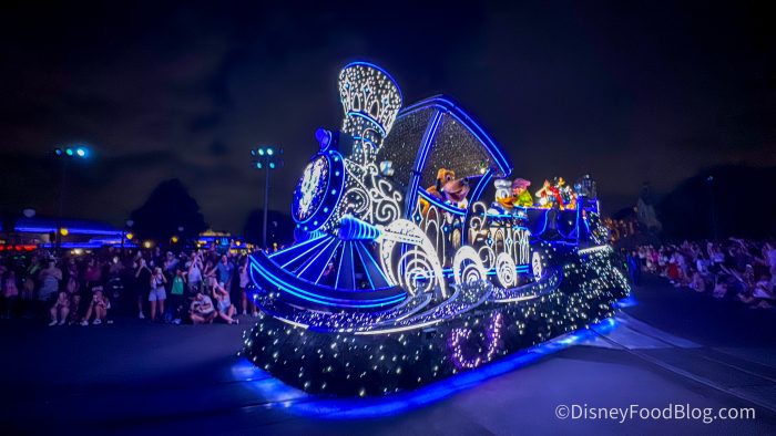 We just got to see Magic Kingdom’s NEW nighttime parade, Disney Starlight: Dream The Night Away, which lit up the night sky on its way from Main Street, U.S.A. to Frontierland (and yes, the parade was LIT, and yes, pun intended). However, what makes this parade even more special is that it has introduced a brand new character to the parks, a train named Whimsy. Yes, a train…and we KNOW Walt would appreciate that.