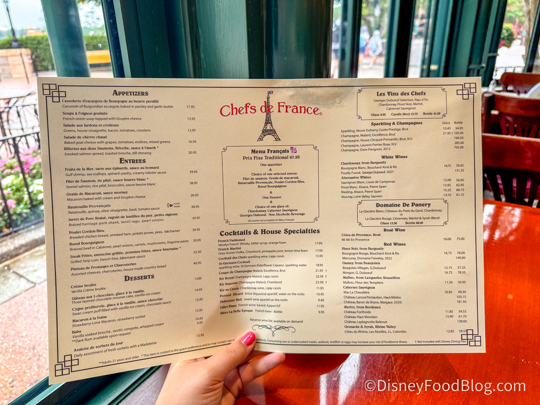 Chefs de France is located in the front of the France Pavilion at EPCOT. In fact, it’s the most prominent restaurant in the whole pavilion!