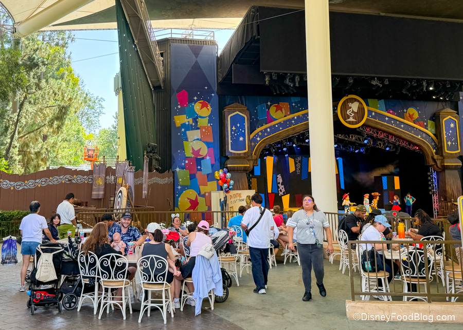 Also, with the Pixar Pals Playtime Party happening in the theater, seating is even harder to come by in the area. If you’re going to grab food here, you might have to take it elsewhere to eat. However, note that you may at least be able to find a seat in the bleachers at the theater, so that’s something.