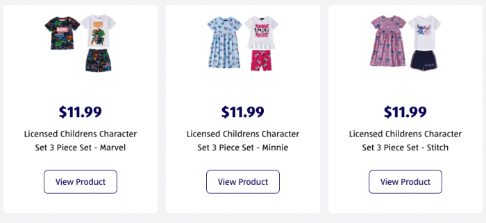 Looking for some new apparel at low prices for this summer? Check out the Childrens Character 3 Piece Sets for just $12!