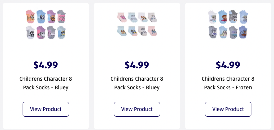 They’re not as exciting as full new outfits, but there are also 8-Pack Kids Character Socks available for just $5 as well.
