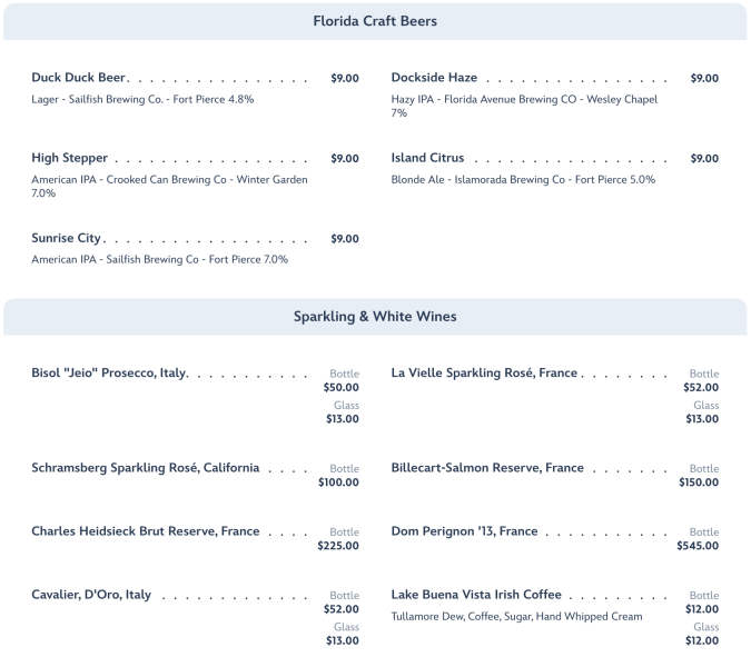 …Florida Craft Beers, Sparkling and White Wines, Red Wines and blends…