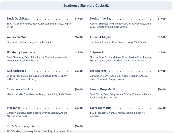 …as well as BOATHOUSE Signature Cocktails.
