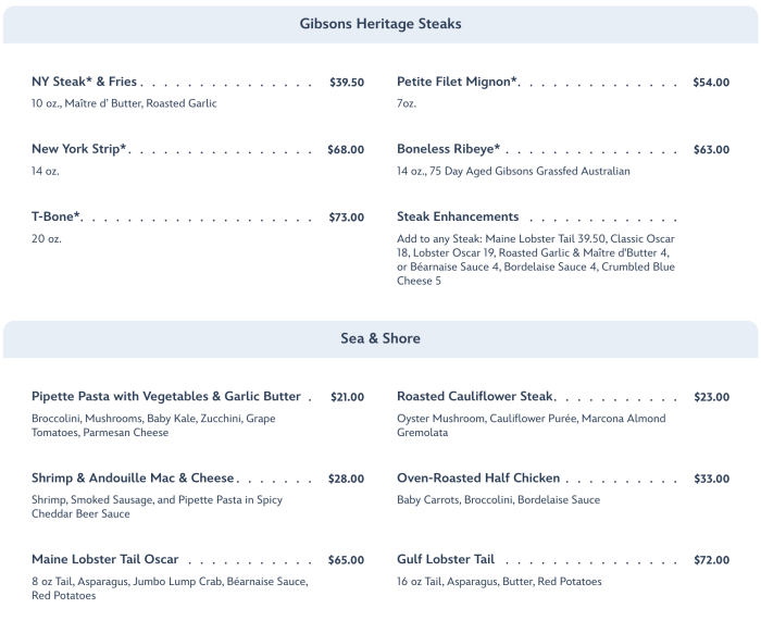…steaks, and surf & turf options.