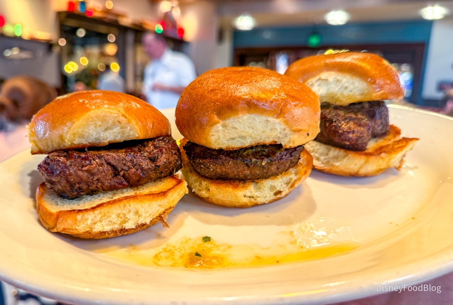 First up, we grabbed the Filet Mignon Sliders for $22.50. These are served as 3 Sliders with a side of Maître d’ Butter.