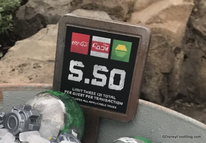 These special containers are shaped like thermal detonators, a Star Wars-universe explosive that bears a resemblance to real-life explosives. When Galaxy’s Edge first opened, there was even talk that the Coke bottles would be banned from flights due to the TSA’s rule, which stated, “Replica or inert explosives aren’t allowed in either carry-on or checked bags.”