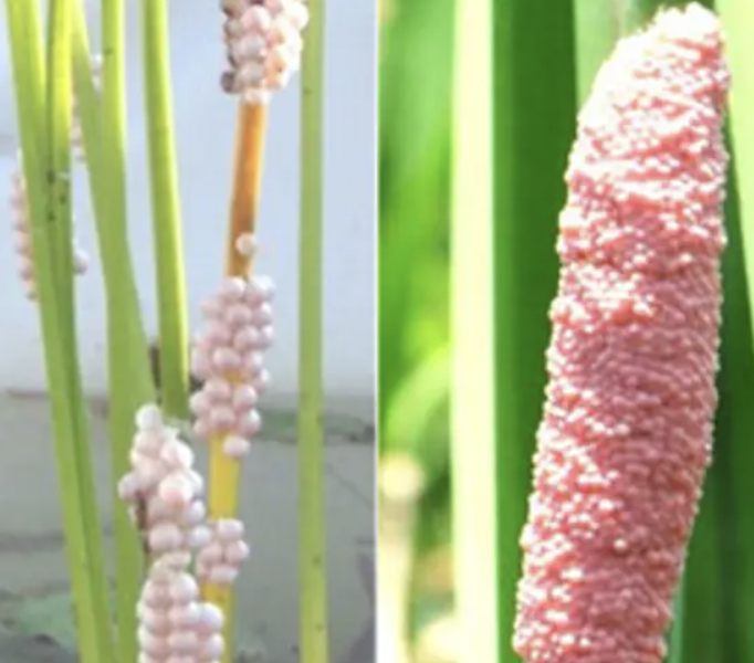 These little pink blobs are called Pomacea apple snails. There are 4 different exotic species in Florida called the island apple snail, channeled apple snail, spike-topped apple snail, and the titan apple snail. So what is it about these little pink blobs that are causing us to pause? These snails are causing tons of damage to wetland crops because they eat “a variety of aquatic vegetation, fruits and vegetables, algae, remains of decaying organisms, and other snail eggs.”