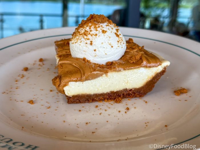 The Biscoff cookie crust crumbles underneath the pie like a graham cracker crust’s consistency would, and the cheesecake mousse against the butter cookie flavors almost gives a hint of butterscotch to the taste. We’d highly recommend trying this one out while you can because Summer House on the Lake is known to switch up their pie flavors seasonally and we’d be remiss if you let this one pass you by on your next Disney World trip.