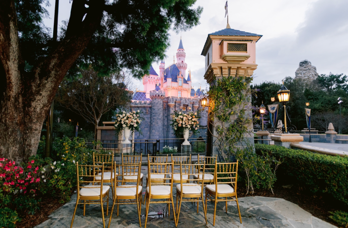 Finally, the other new location is the Fantasy Faire Garden, with a backdrop of Sleeping Beauty Castle. This ceremony space can fit up to 10 guests in an intimate setting — how romantic!