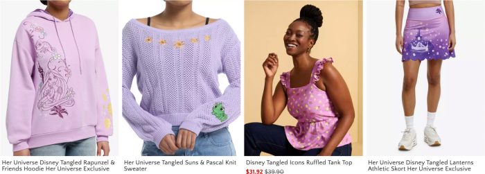 Her Universe, the clothing line launched by legendary voice actress Ashley Eckstein — best known for voicing Ashoka Tano on the Star Wars series Clone Wars and Rebels — has a brand new lineup of Rapunzel-based clothing and accessories.