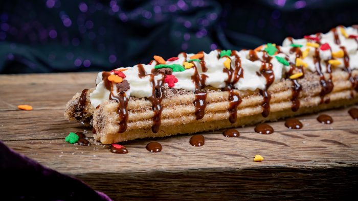 - Spiced Bundt Cake: Spiced cake filled with cream cheese frosting and topped with purple glaze, sprinkles, and spiced mousse with a Mickey chocolate decoration (Available Aug. 22 through Nov. 13)