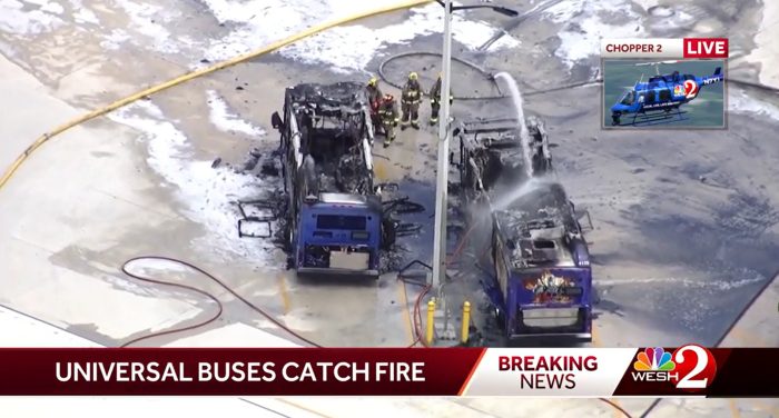 According to WESH 2, two buses caught on fire near Epic Universe. Orange County Fire Rescue is on the scene.