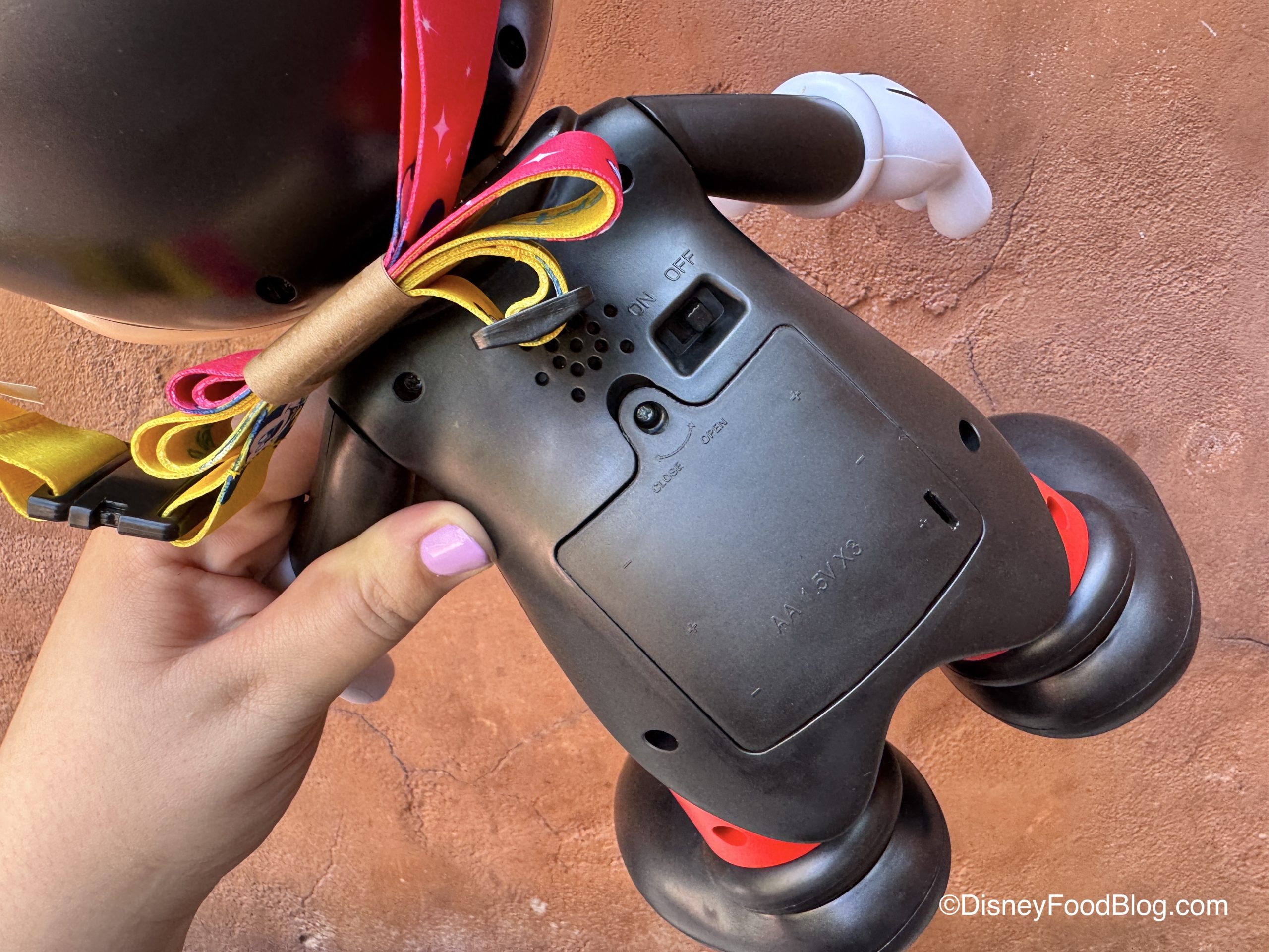 Decked out in Mickey’s best dress clothes, this is no ordinary popcorn bucket. Mickey is interactive, with blinking eyes, a moving head, and several sounds and phrases.