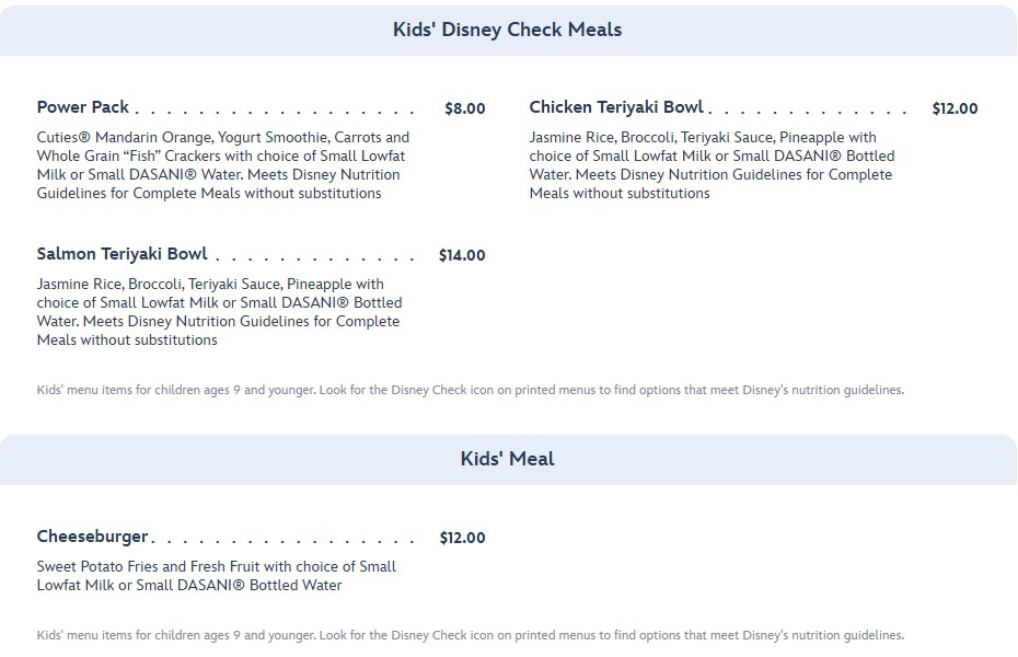 There are also some options for kids’ meals, too!