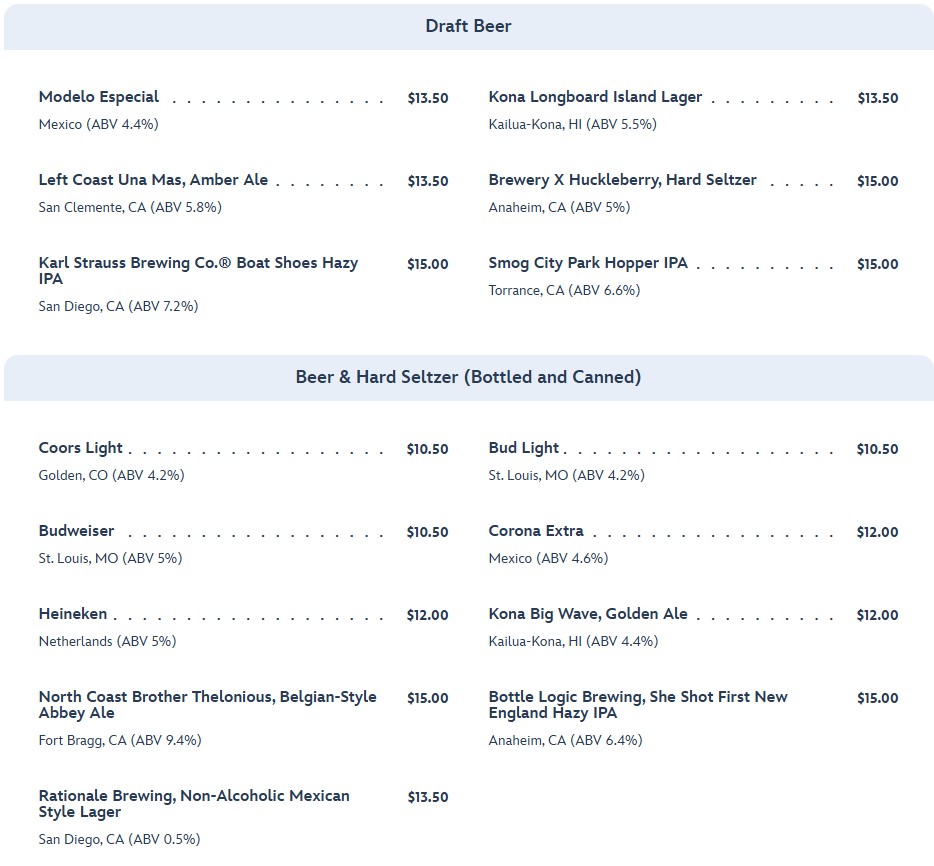You can also choose from a variety of draft beer, beer, and hard seltzer.