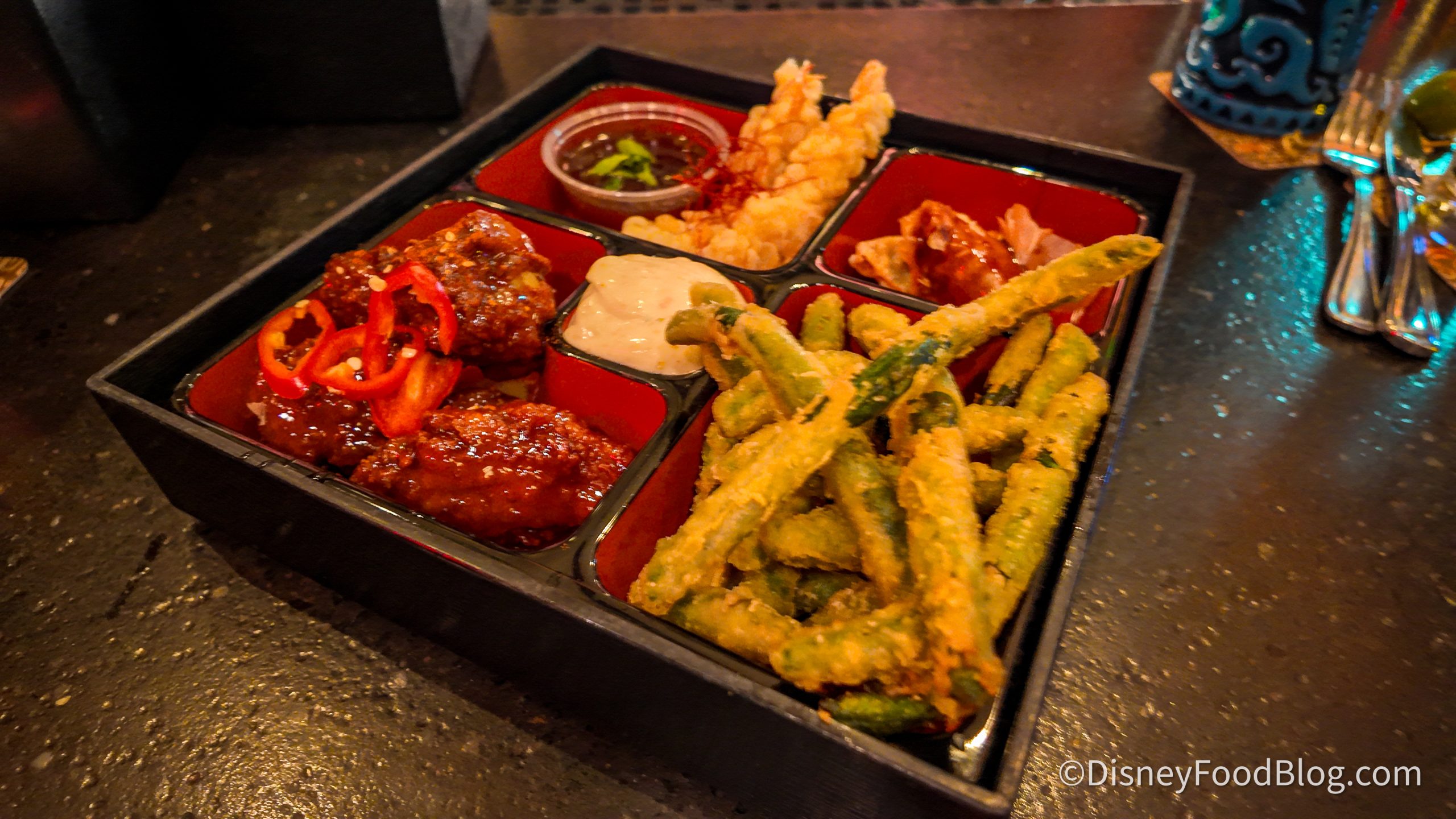 We thought the breading on the tempura shrimp was great. The wings have a decent kick to them, and we love the sweet and salty balance in the sweet orange sauce. Each piece was crispy and had a great amount of sauce. The sauces are great compliments to all the elements. We definitely recommend trying a variety of combinations!