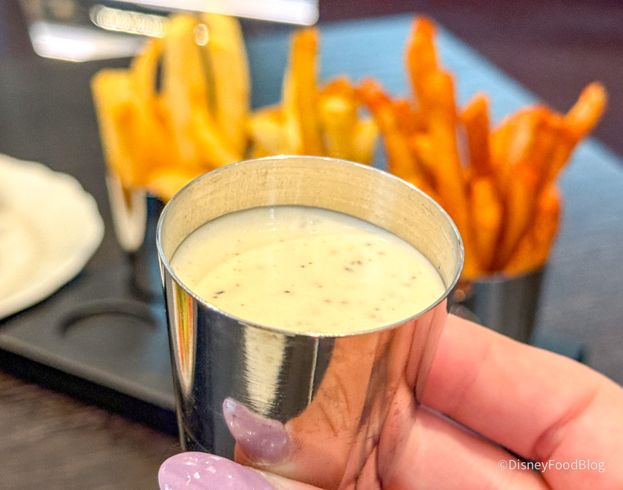 Well, Bourbon Steak has that — but with fries. When we dined here, shortly after we ordered, we were brought out a complimentary fry trio. We were SO pleasantly surprised by this! Our server explained that Michael Mina loves to do things in trios, and he loves little flights of things, so this was naturally 3 fries and 3 sauces — kind of a great idea.