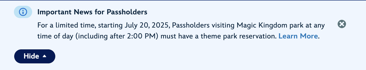 The difference here is that while you used to be able to enter Magic Kingdom without a reservation after 2PM on weekdays, you can’t do that anymore. You either have to have a reservation for Magic Kingdom to enter at any time of day, or you have to have already been to another park with a reservation and then hop to Magic Kingdom.