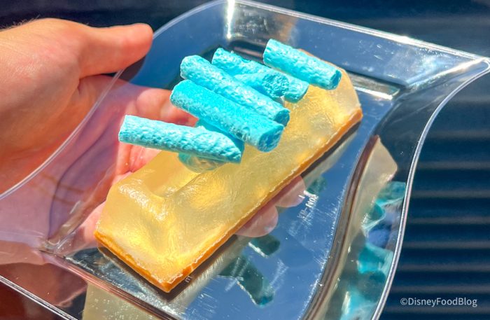 We stopped by Pym Test Kitchen at Disney California Adventure to check out some of the NEW Fantastic Four eats that just dropped! First up, we grabbed the Fantastic Elastic Mozzarella Stick for $14.49, which is served with sour cream and onion ranch. Oh, and did we mention that it’s completely BLUE?!