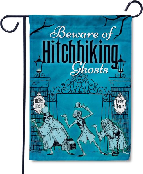 Haunted Mansion fans, we’ve got another decoration that you’re going to love. Make sure you’re warning trick-or-treaters to beware of hitchhiking ghosts this Halloween, with this Hitchhiking Ghosts Garden Flag!