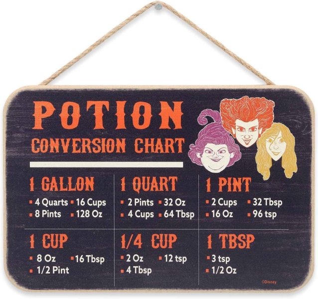 It isn’t a proper Halloween without baking Halloween treats. Make your baking more fun with this Hocus Pocus Hanging Wood Measuring Sign! This sign gives you all the conversions you’ll need to make baking efficient and fun.