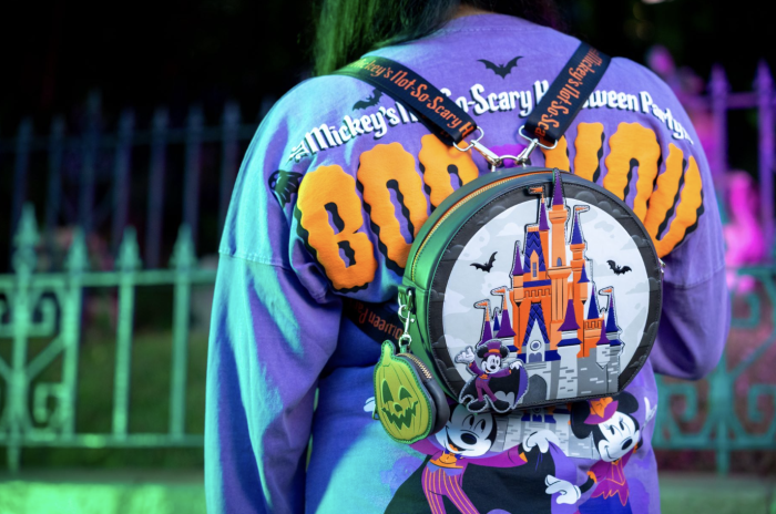 There’s also the new Mickey’s Not-So-Scary Halloween Party Loungefly Backpack! Mickey and Minnie are featured again in their Halloween outfits, and it has plenty of space for your tricks and treats. It also features a pumpkin coin purse attachment.