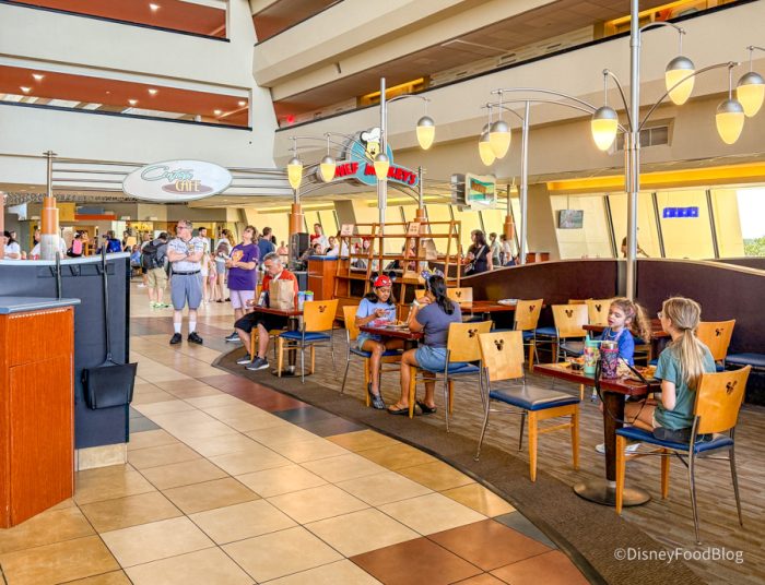 The Contempo Cafe is located on the second floor of the resort, right next to Chef Mickey’s and the stores at the resort. At this spot, you can find a variety of options like sandwiches, salads, pastas, and amazing desserts. If you’re staying at this resort and want a quick snack or need a soda refill, this is the spot to go. Right now, the Contempo Cafe is under construction!