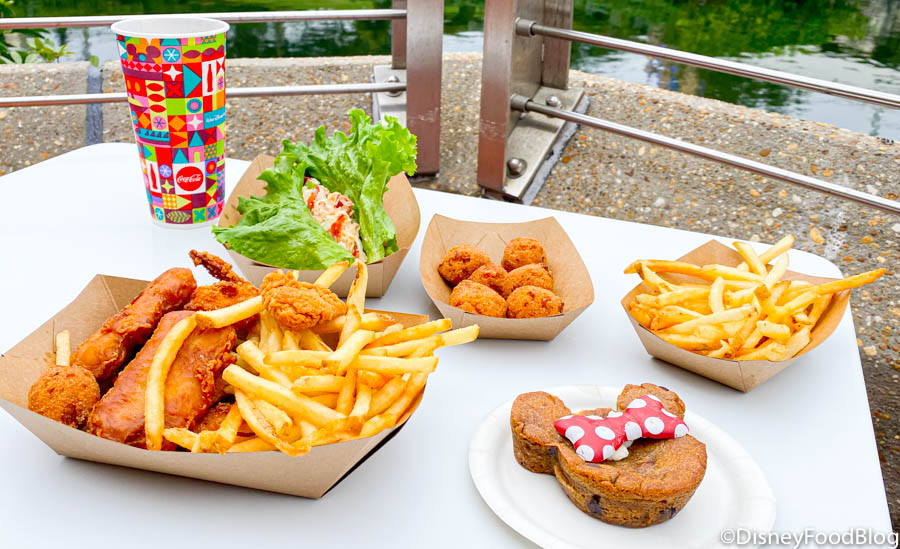 After the parks reopened from the pandemic, Tomorrowland Terrace was open for a while as a great option where you could social distance and sit outdoors in fresh air. Columbia Harbour House was getting a refurbishment at that time, so the seafood-inspired menu moved over here to Tomorrowland, and it seemed that this rarely-open spot actually had some of the best quick service food in the park.