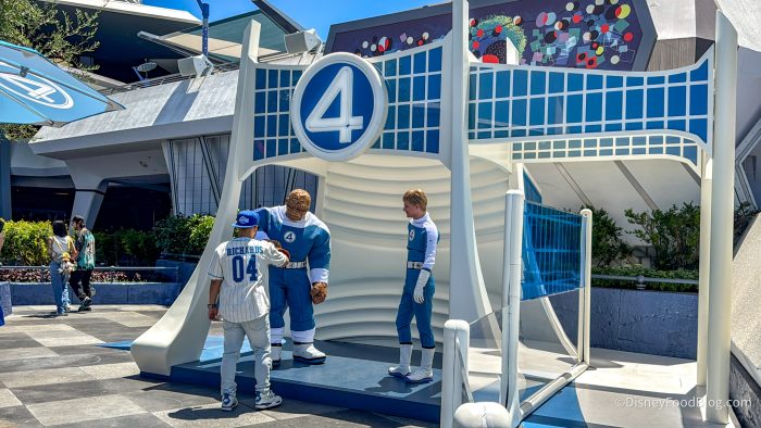 To celebrate the release of the new movie Fantastic Four: The First Steps, Disney has brought in Reed Richards, Sue Storm, Johnny Storm, Ben Grimm, and H.E.R.B.I.E. to meet guests in Tomorrowland! They meet separately, so sadly, you won’t see the entire gang together. First up, husband and wife, Reed and Sue, are paired together.