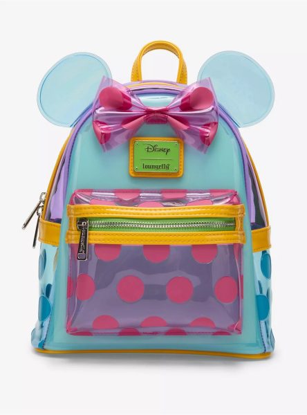 Add a colorful pop to your Disney Parks outfit with this mini backpack! Made with a jelly-like material, this color-blocked bag includes polka dot details and an applique bow and ears. With adjustable straps, a top handle, and a front pocket, this bag is perfect for a pop of color.