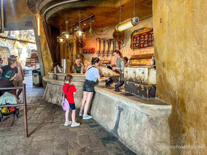 Ronto Roasters is located inside Star Wars: Galaxy’s Edge, right after you pass through the market. It has a walk-up counter, but they also offer Mobile Ordering here.