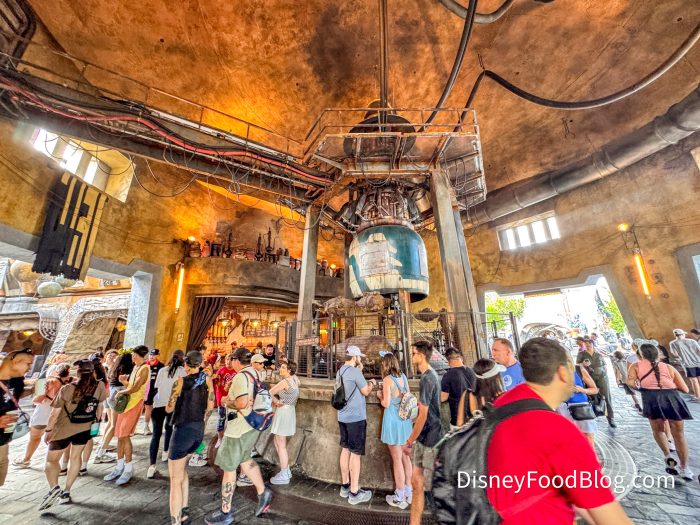 The centerpiece of the dining location is a droid turning a spit to “cook” the meat. And a super fun fact is that the spit itself is built from a podracing engine!